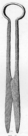e. Saks av jern, R.443, men den ringformede utvidelse øverst på bøylen er noe mindre en på typefiguren. Det ene bladet er avbrukket, men i behold. Lengde 18 cm. f. Skrinhank av jern, nærmest som Arbman: Birka: 1 Taf. 269:5, men noe kortere og høyere. Endene er heller ikke så høytoppsvinget som ved typefiguren. Lengde 7 cm. g. Skrinbeslag av jern, en del stykker, deriblant et forholdsvis stort rektangulær stykke med et hull i, trolig låsbeslag. h. Håndteinshjul av kleber, vanlig form med plan underside og hvelvet overside. Glatt og uornet. Diameter 4,1 cm. j. Tein av jern, med endel vedhengende trerester. Lengde 5,1 cm. k. Stykke hvalbein, svært porøst. Lengde 28,5 cm, største tykkelse 7 cm. Funnene ble gjort på en tidligere boplass.